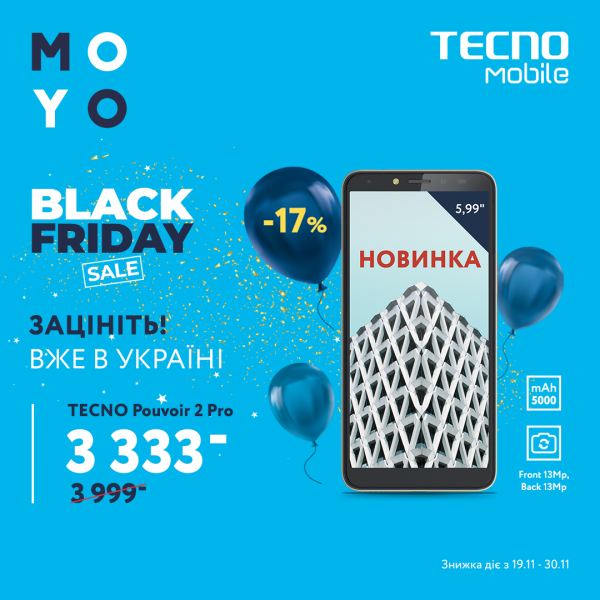 В MOYO «чорна п'ятниця» пройде саме в американському форматі — з ліквідації складських запасів на 7 500 товарних позицій, багато з яких будуть продаватися з чесної знижкою до 75%. При цьому в магазинах MOYO і на сайті moyo.ua покупців також очікують спеціальні пропозиції на «гарячі» новинки.